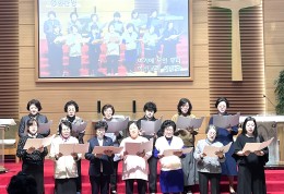 여선교회의 임원들이 하나님께 아름다운 찬양을 올려드립니다. 예배당과 우리의 마음에 찬양의 향기가 가득 차는 것 같습니다. 주님이 사랑하시는 아름답고 귀한 꽃같은 분들입니다.