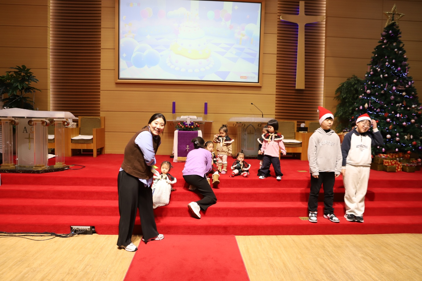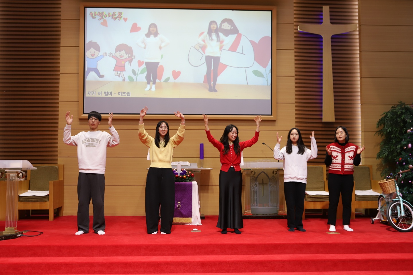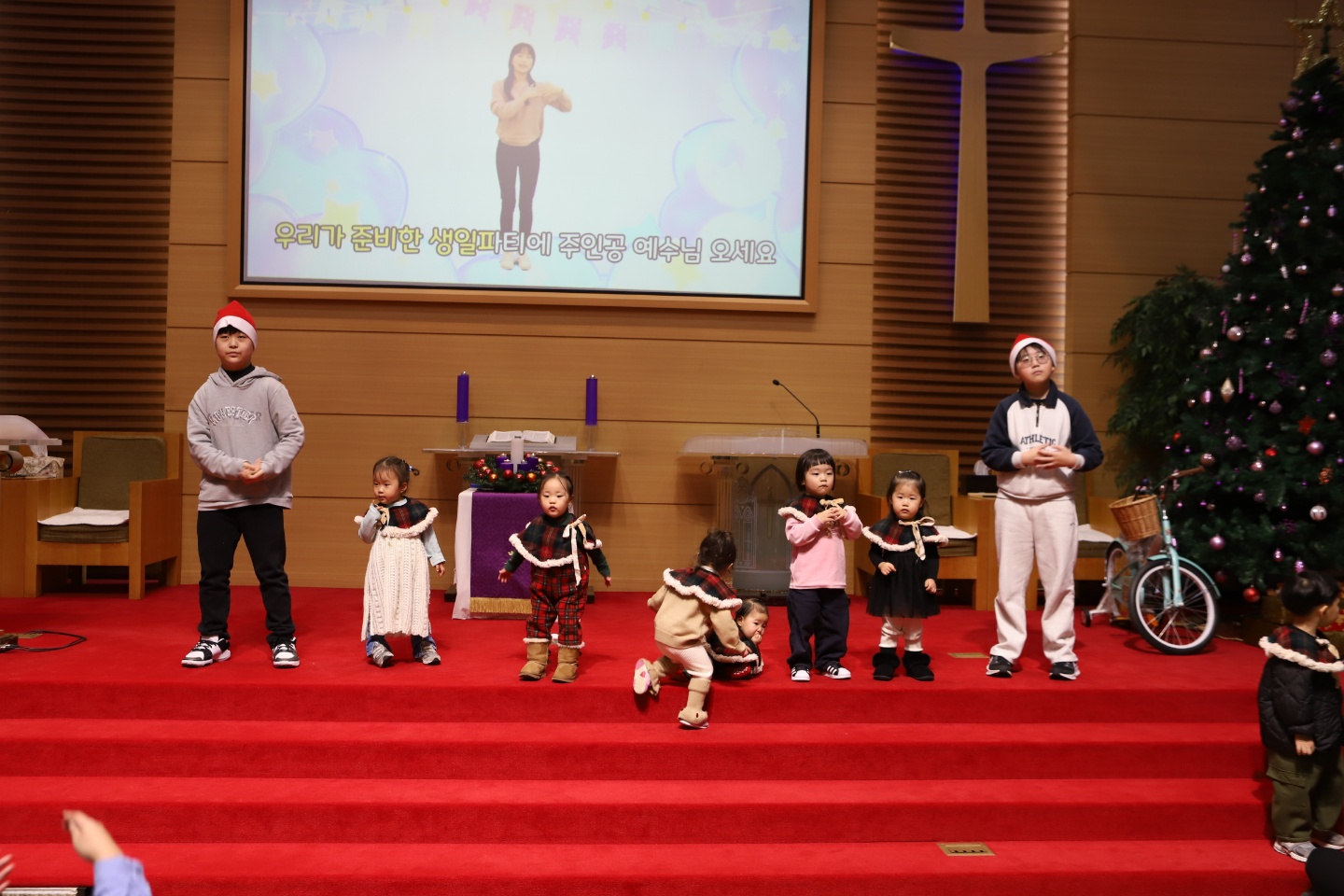 모든 성도들이 큰 소리로 성탄 찬양을 하며 성탄의 기쁨을 노래했습니다.