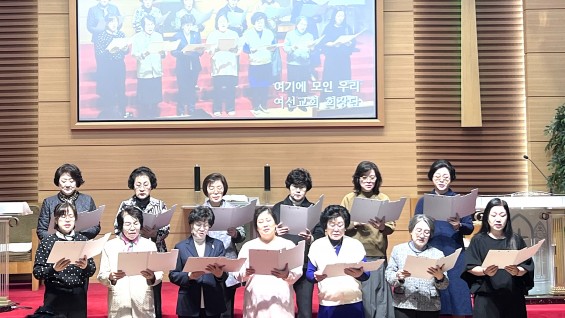 여선교회의 임원들이 하나님께 아름다운 찬양을 올려드립니다. 예배당과 우리의 마음에 찬양의 향기가 가득 차는 것 같습니다. 주님이 사랑하시는 아름답고 귀한 꽃같은 분들입니다.