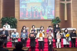 여선교회의 임원들이 하나님께 아름다운 찬양을 올려드립니다. 예배당과 우리의 마음에 찬양의 향기가 가득 차는 것 같습니다. 주님이 사랑하시는 아름답고 귀한 꽃같은 분들입니다.