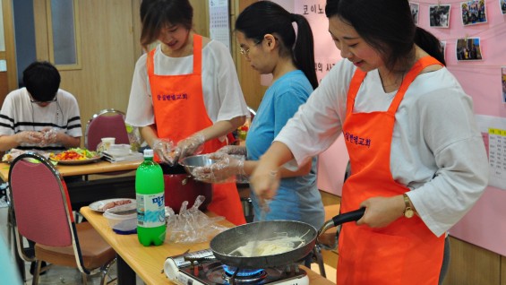 지난 주일 오후 시간에는 유치부와 꿈내음부 아이들이 함께 모여 음식을 만들어 먹었습니다.