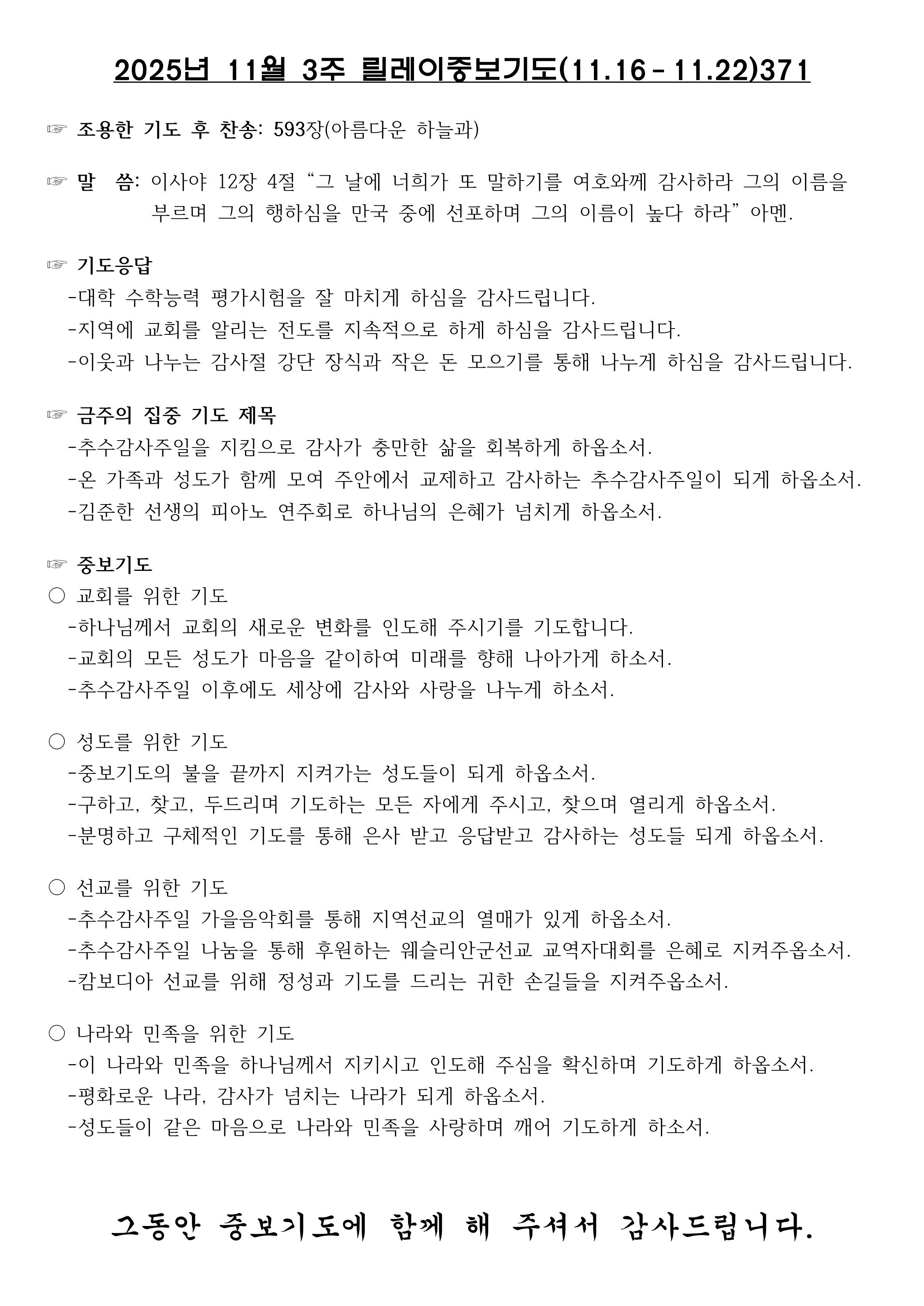 25년 11월 셋째주간 중보기도제목 [2025]
